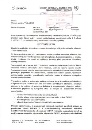 Upozornenie pre vinohradníkov a záhradkárov
